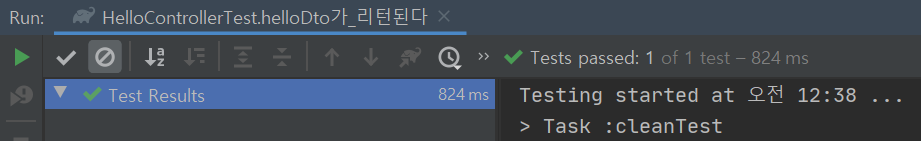 테스트를 실행시켜주면 아래와 같이 성공한 것을 볼 수 있습니다.