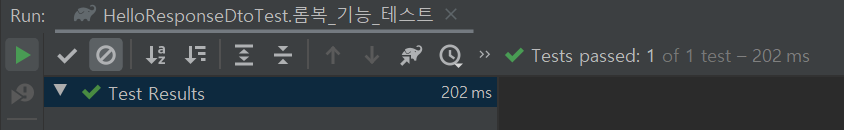 생성한 Dto에 적용된 롬복이 잘 작동하는지 테스트 코드를 작성해 확인합니다.