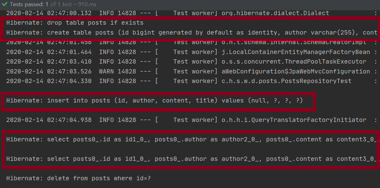 - postsRepository.findAll : 테이블 posts에 있는 모든 데이터를 조회