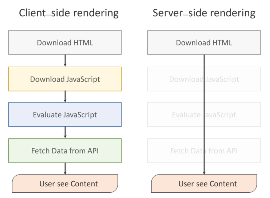 크게 세가지 이슈를 중점적으로 비교해 볼 수 있다. 초기 렌더링 속도, 검색엔진 최적화, 보안 문제이다.