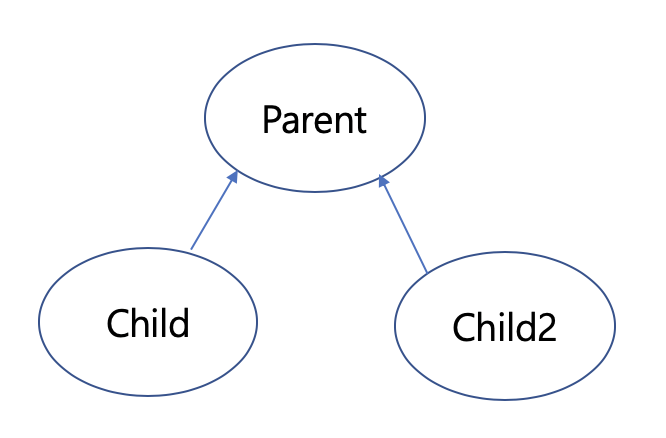 - 클래스 Child와 Child2가 모두 Parent클래스를 상속받고 있다.