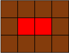Leo는 카펫을 사러 갔다가 아래 그림과 같이 중앙에는 빨간색으로 칠해져 있고 모서리는 갈색으로 칠해져 있는 격자 모양 카펫을 봤습니다.